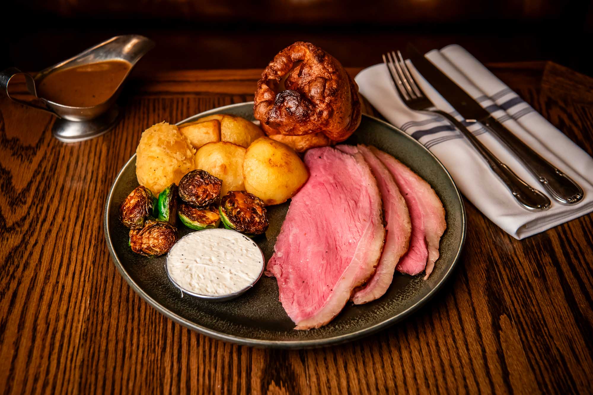 slow-roasted picanha, mashed swede, brussels sprouts, yorkie, rabbit hole signature deep gravy