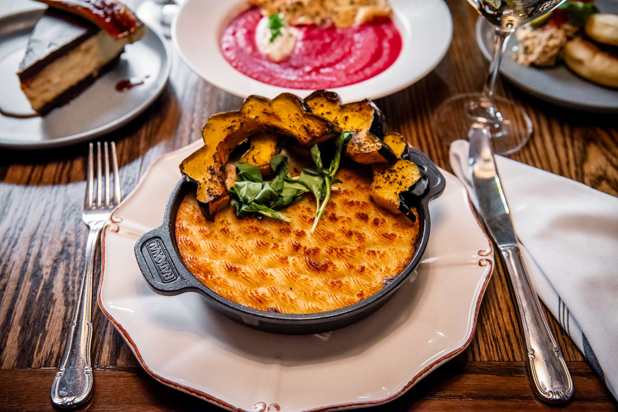 Enjoy winter favourites like Ontario Chicken & Roots Pot Pie or Ale-battered Haddock & Chips for lunch, or opt for a classic Petite Roast Dinner or Roasted Cod at dinner. Finish on a sweet note with Peach Crumble or Chocolate Banoffee Cheesecake.
